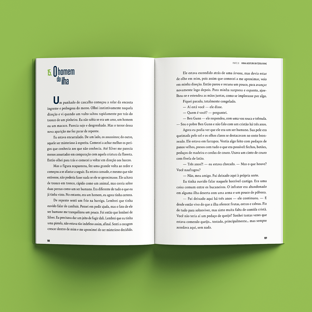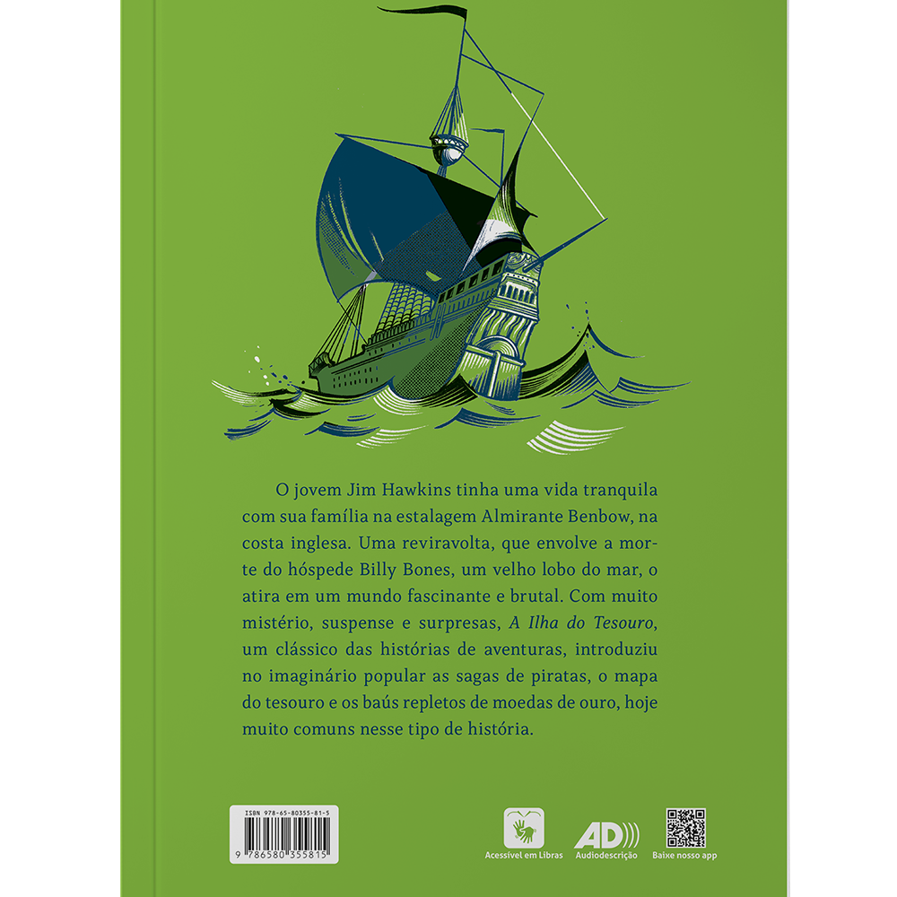 O jovem Jim Hawkins levava uma vida tranquila com sua família numa estalagem, na costa inglesa, no século XVI. Até que a morte de um hóspede, velho marinheiro, o atira em um mundo fascinante e brutal. Repleto de mistério, suspense e surpresas, o livro A Ilha do Tesouro é o responsável por introduzir as sagas de piratas, o mapa do tesouro e os baús repletos de moedas de ouro em nosso imaginário popular. A obra, com projeto gráfico caprichado, traz ainda um apêndice, chamado Biografia da obra, que traz o contexto histórico em que o livro foi escrito, curiosidades sobre piratas, a narrativa e seu criador.