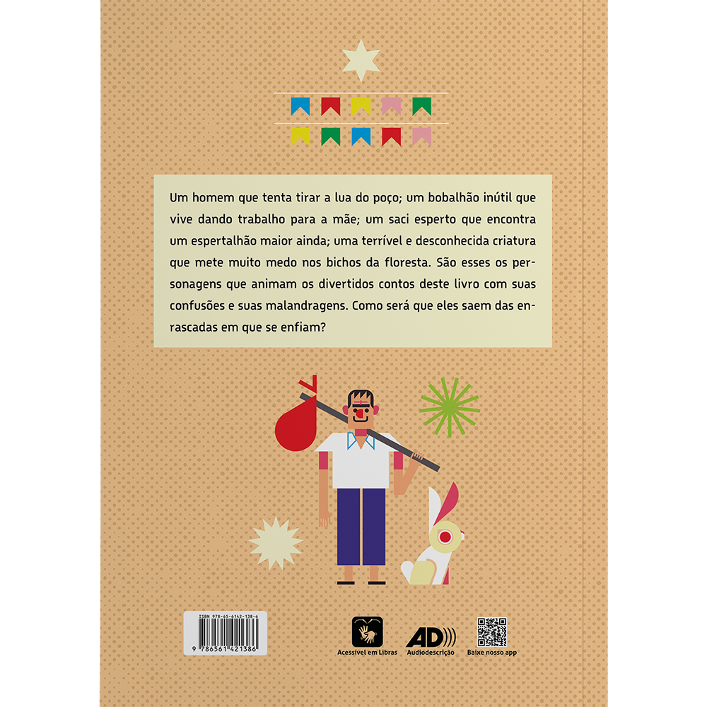 Um homem que tenta tirar a lua do poço, um bobalhão que vive dando trabalho para a mãe mas um dia ganha objetos maravilhosos que produzem fartura e riqueza, um saci esperto que encontra um espertalhão maior ainda, uma terrível criatura que mete muito medo nos animais. São esses os personagens que animam os divertidos contos deste livro com suas confusões e suas malandragens. Oriundas de nações tão diversas quanto a Turquia, a Itália, o Brasil e a China, respectivamente, as histórias reunidas neste livro destacam a esperteza dos personagens e ações que vão se repetindo em ciclos cada vez mais amplos até o desfecho engraçado ou redentor. Diversão garantida para crianças e adultos.